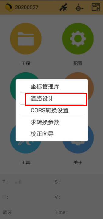 图10 8、返回主界面,点击“测量”,进入“道路放样”。